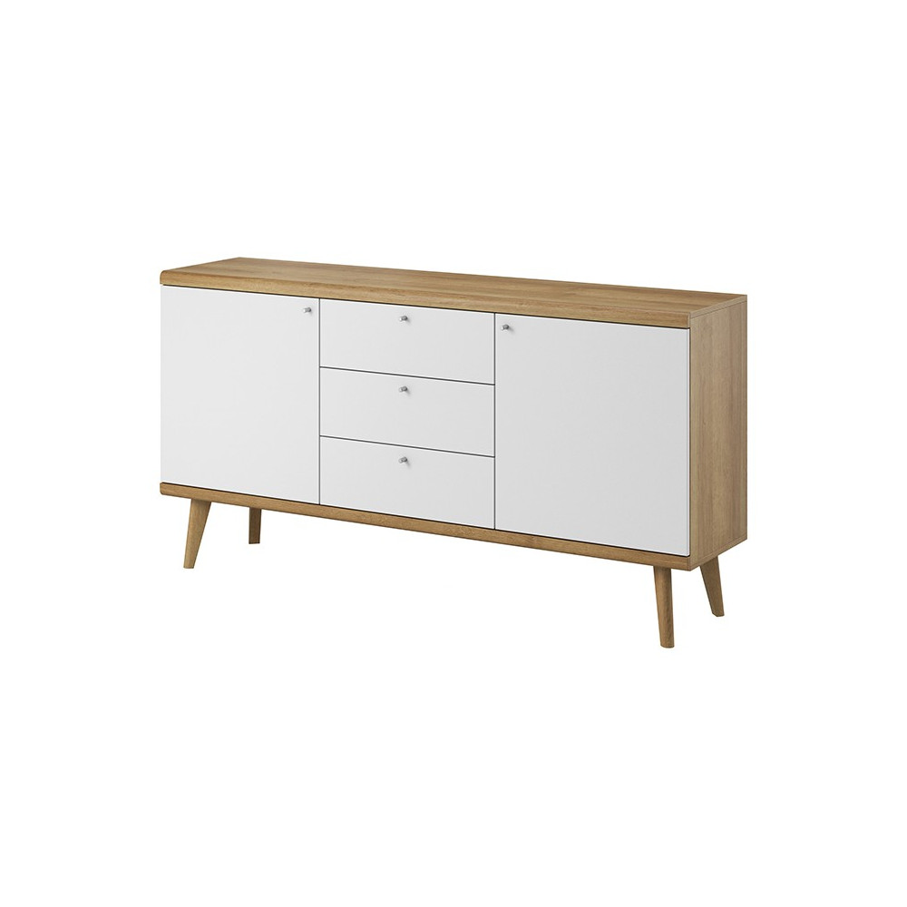 Zestawienie dębowego dekoru i drewnianej nogi z białym frontem, nada twojemu wnętrzu ciepła i lekkości. Metalowy uchwyt o subtelnym kształcie zwieńcza oryginalną formę skandynawskiej prostoty,a listwa łącząca blat z frontami podkreśla naturalny charakter dekoru. Dzięki mnogości brył w kolekcji nigdy nie zabraknie Tobie pomysłu na ciekawą aranżacje.Twoje wnętrze zawsze będzie na miejscu - Mori .