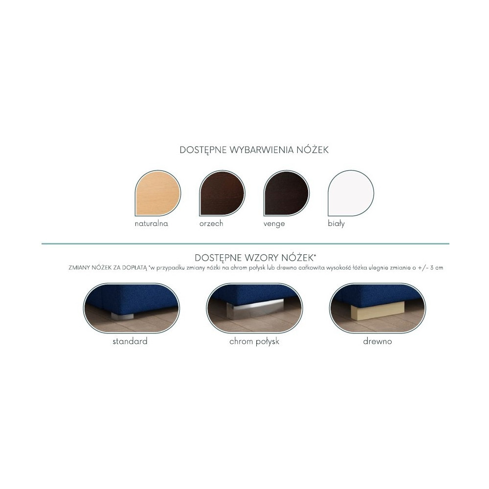• Pojemnik/dno – biały HDF 5mm - w opcji stelaża metalowego + pojemnika na pościel