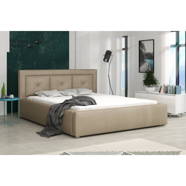 • Rodzaj stelaża – stelaż metalowy na automacie gazowym (34 listwy) + pojemnik na pościel dwukomorowy na całości powierzchni spania - Materac osadza się 10 cm w ramie łóżka