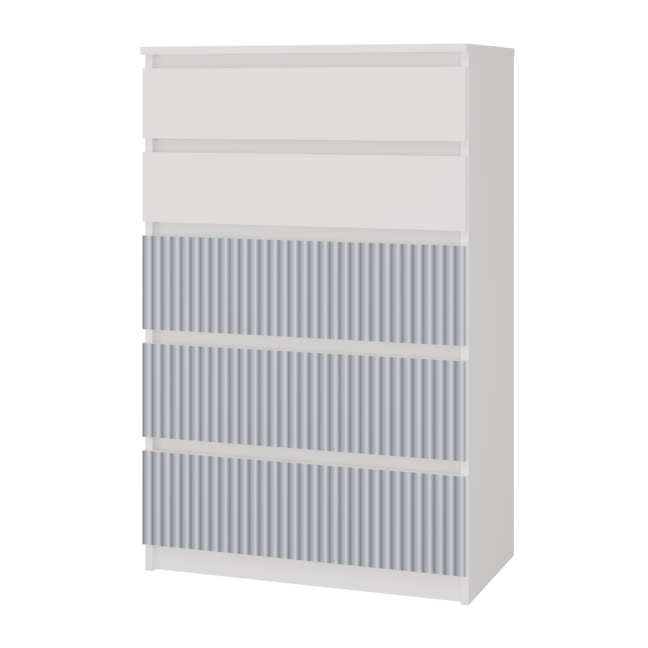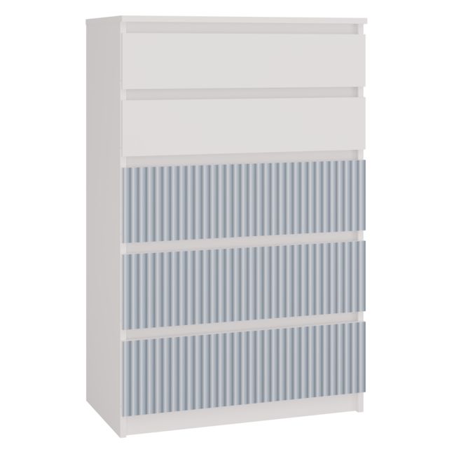 • Front trzech dolnych szuflad - Pionowe wzory w kolorze niebieskim nadrukowane w nowoczesnej technologii