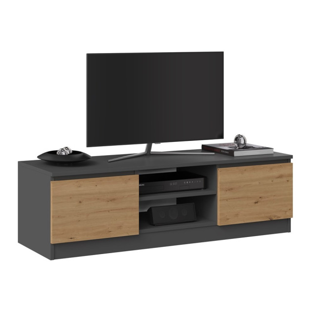 Szafka RTV 120 cm to propozycja dla osób szukających funkcjonalnych mebli do nowoczesnego wnętrza.