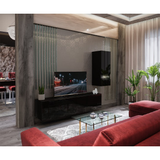 Meblościanka BOXING 15 Biały Połysk/Czarny Połysk