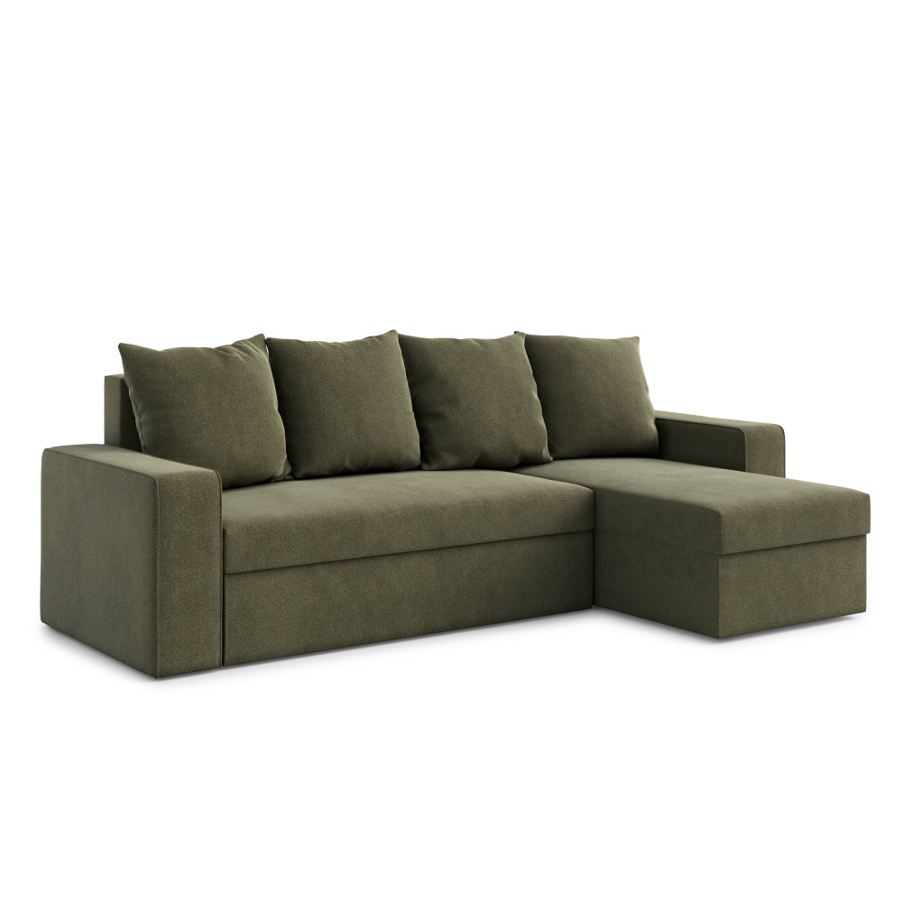 Narożnik Delo z funkcją spania, 4 poduszkami i obiciem z tkaniny Matana to nie tylko praktyczny mebel do codziennego użytku, ale także stylowy element dekoracyjny, który doda elegancji i charakteru do Twojego wnętrza.