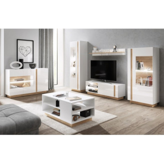 Oryginalna kolekcja mebli, która sprawi, że Twoje wnętrze stanie się nowoczesne i stylowe. Wszystko to za sprawą połysku na frontach, przełamanych dębowym kontrastującym akcentem.