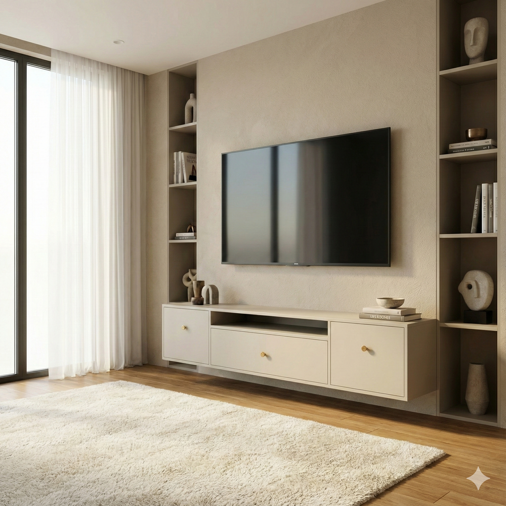 Korpus: Płyta wiórowa laminowana 18mm w kolorze kaszmir mat.