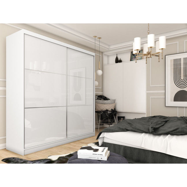 W skład zestawu wchodzą: korpus, półki, drążek, zestaw montażowy, fronty szkło lacobel