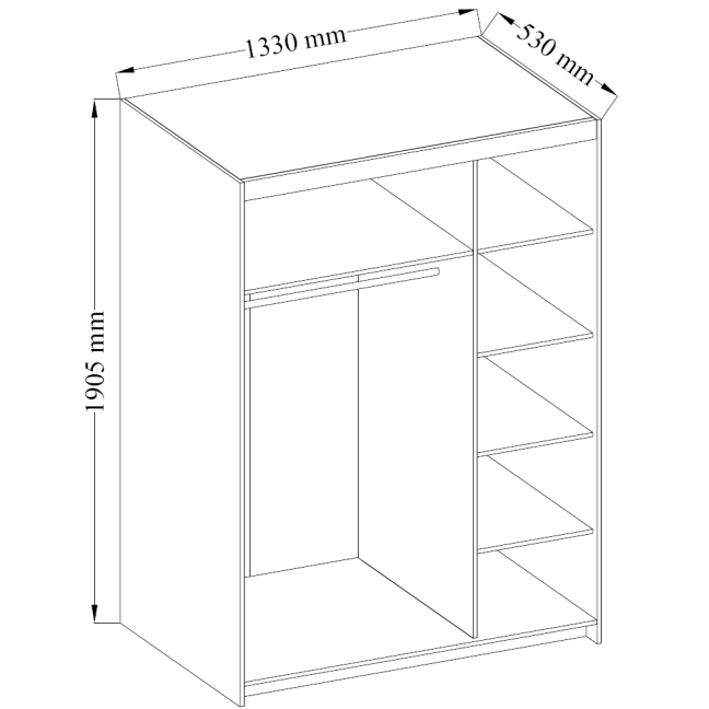 Wymiary : 1330 x 1905 x 530mm (szer. x wys. x gł.)