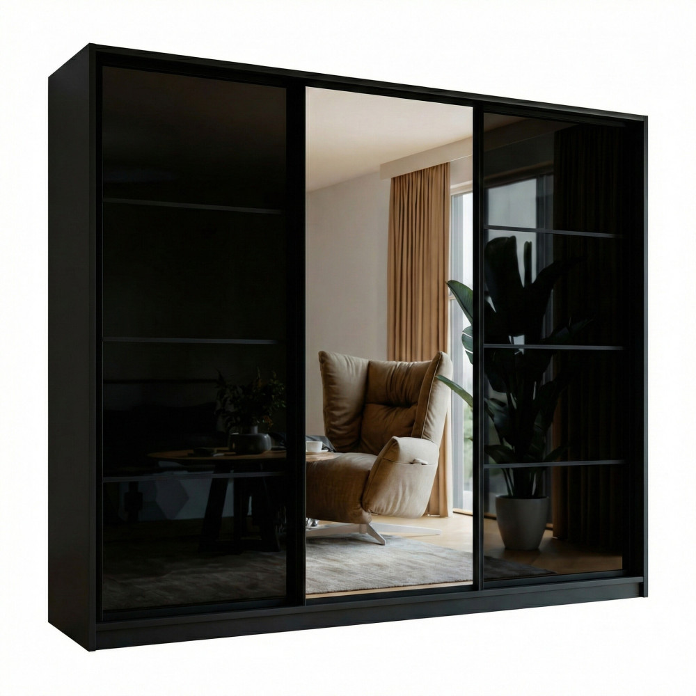 Szafa Przesuwna Porto 250 Czarny Połysk