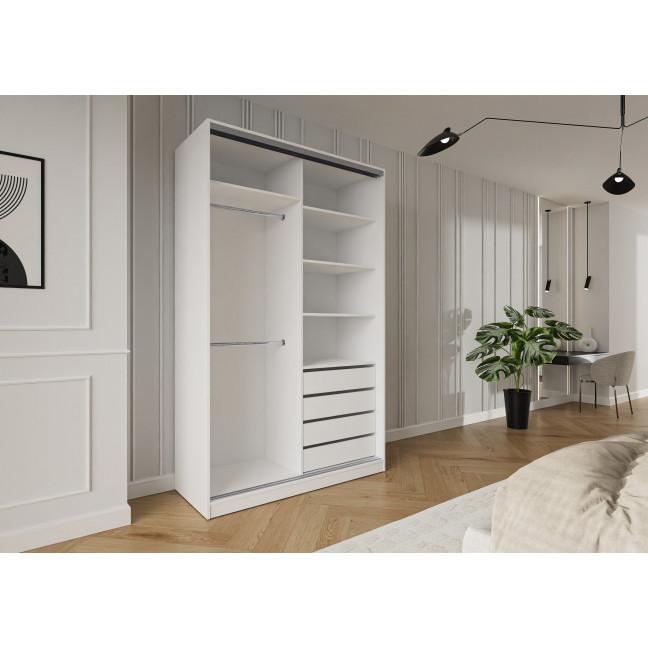 Szafa umożliwia montaż dodatkowych półek w miejscu przeznaczonym na wieszaki – ich rozmieszczenie wybierane jest przez klienta podczas montażu. W przypadku wyboru 2 dodatkowych szuflad, możliwe jest ustalenie ich położenia: mogą zostać zamontowane na samym dole lub nieco wyżej – decyzja zapada podczas montażu.