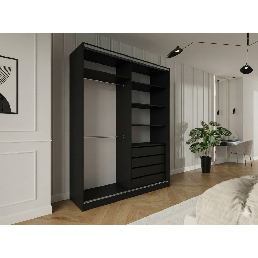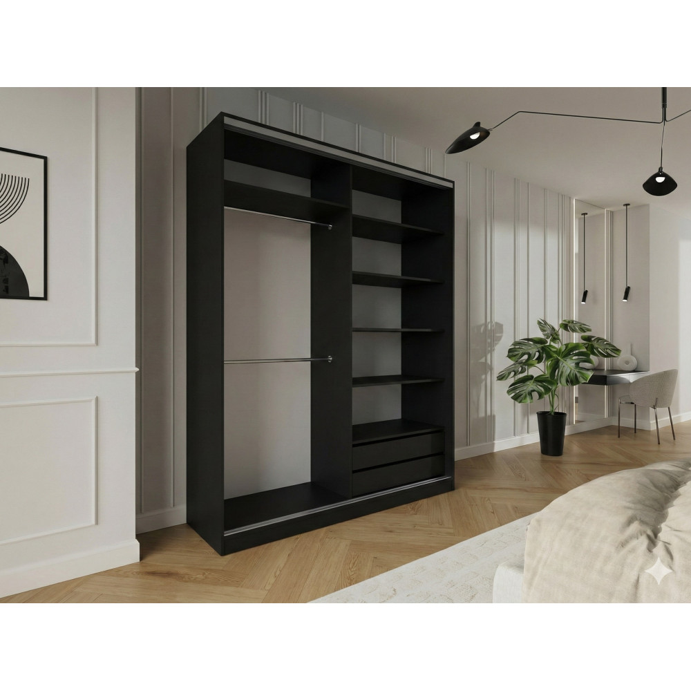 Szafa przesuwna Trend 5 180 Czarny mat + Dąb Lefkas