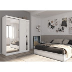 Szafa przesuwna z płyty laminowanej 16 mm. Szafa wyposażona jest w system jezdny zawierający aluminiowe prowadnice typu LAGUNA oraz kółka ułożyskowane