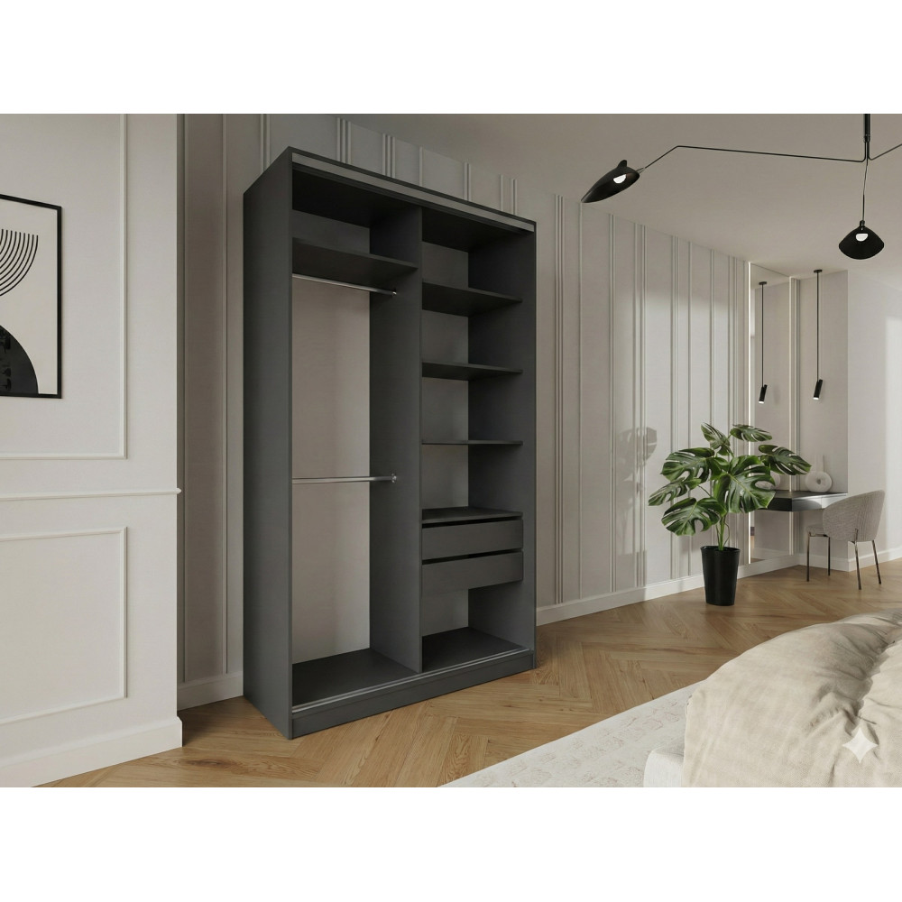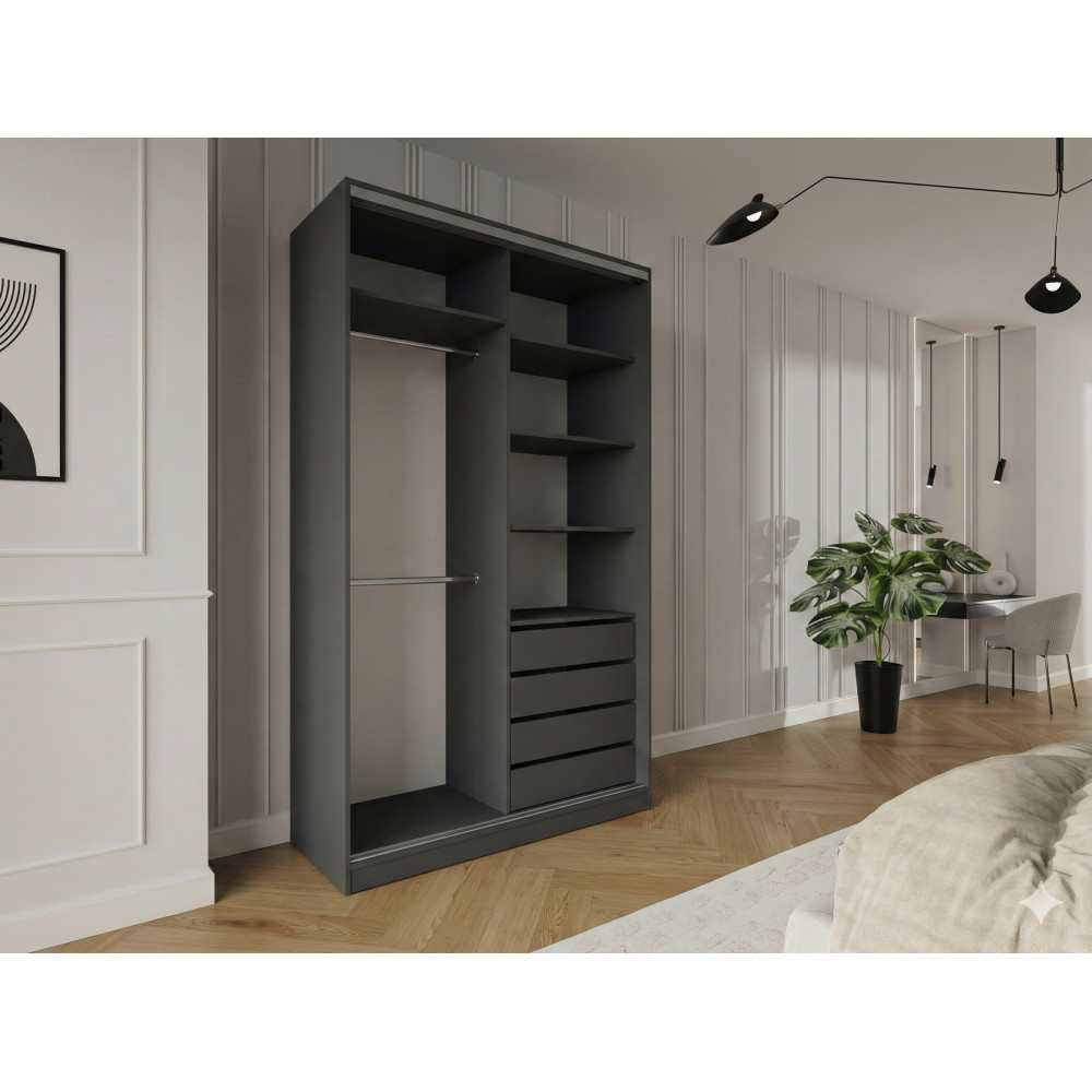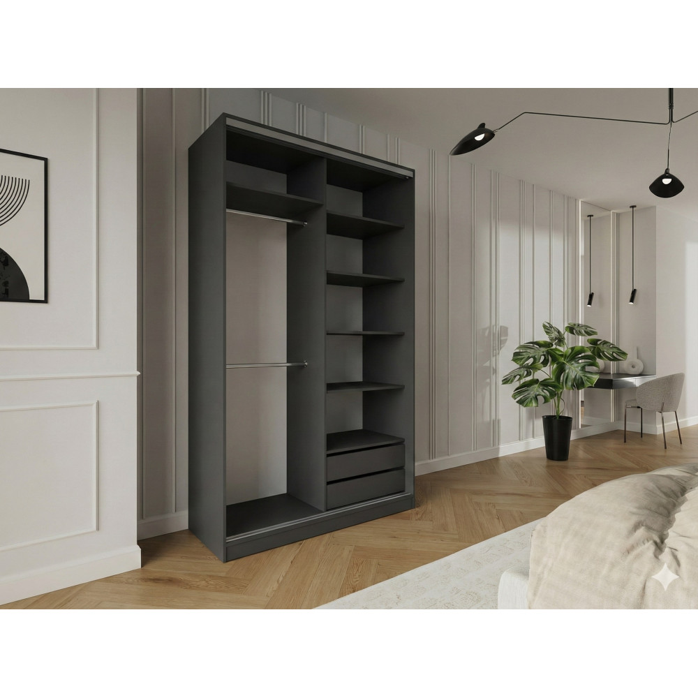 Szafa umożliwia montaż dodatkowych półek w miejscu przeznaczonym na wieszaki – ich rozmieszczenie wybierane jest przez klienta podczas montażu. W przypadku wyboru 2 dodatkowych szuflad, możliwe jest ustalenie ich położenia: mogą zostać zamontowane na samym dole lub nieco wyżej – decyzja zapada podczas montażu.