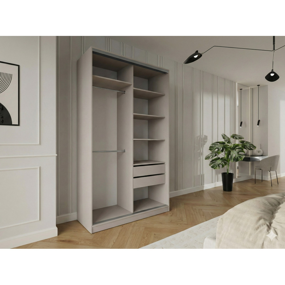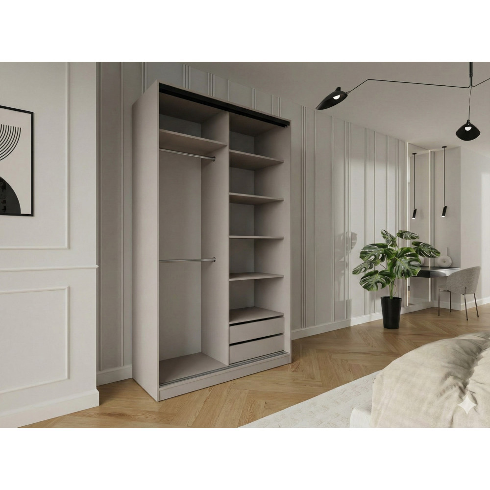 Szafa umożliwia montaż dodatkowych półek w miejscu przeznaczonym na wieszaki – ich rozmieszczenie wybierane jest przez klienta podczas montażu. W przypadku wyboru 2 dodatkowych szuflad, możliwe jest ustalenie ich położenia: mogą zostać zamontowane na samym dole lub nieco wyżej – decyzja zapada podczas montażu.