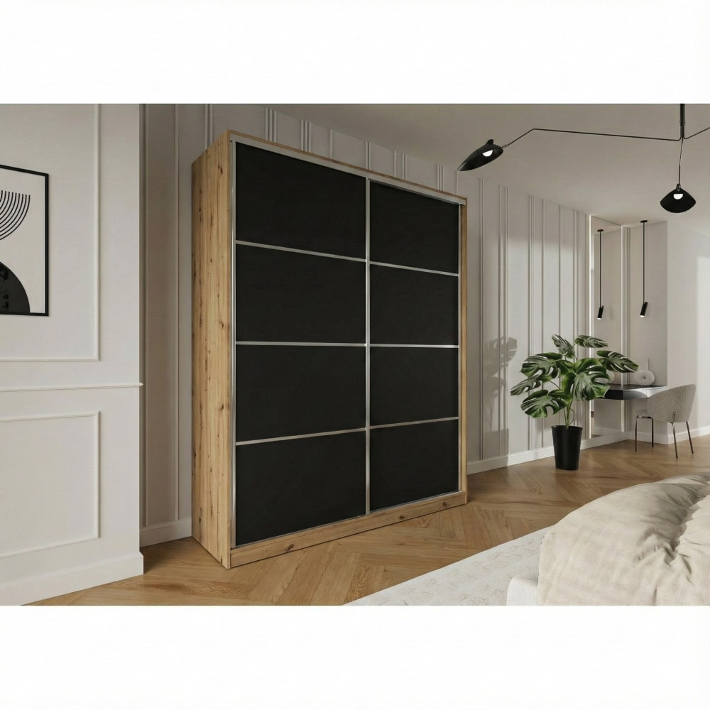 Szafa przesuwna Trend 3 180 Dąb Artisan + Czarny Mat