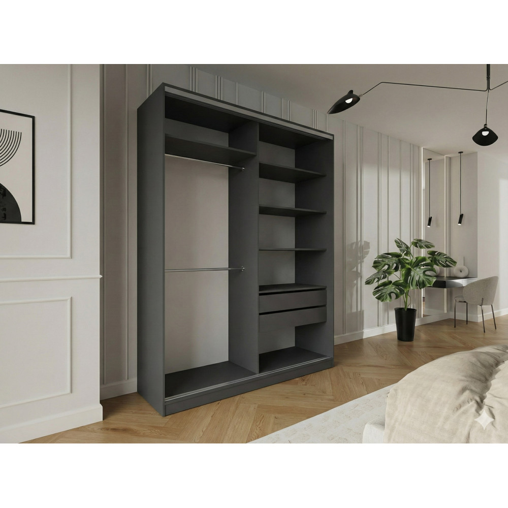 Szafa umożliwia montaż dodatkowych półek w miejscu przeznaczonym na wieszaki – ich rozmieszczenie wybierane jest przez klienta podczas montażu. W przypadku wyboru 2 dodatkowych szuflad, możliwe jest ustalenie ich położenia: mogą zostać zamontowane na samym dole lub nieco wyżej – decyzja zapada podczas montażu.