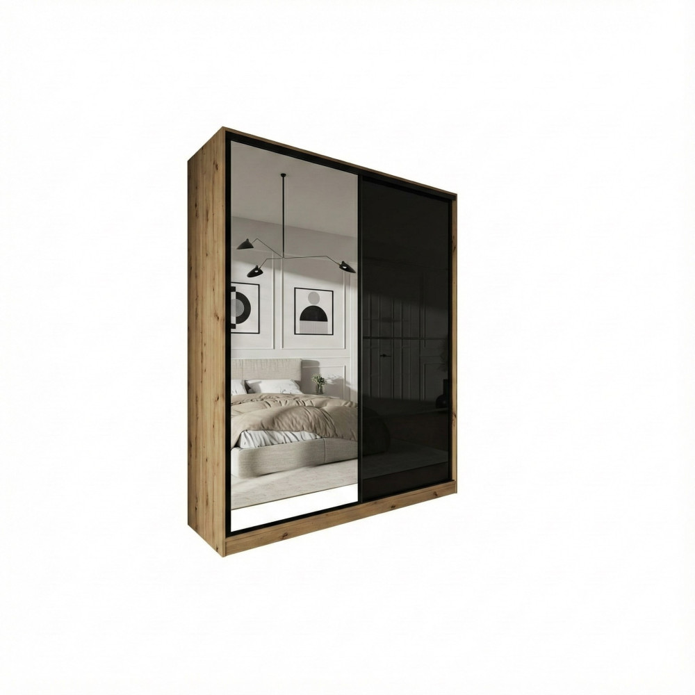Szafa przesuwna Trend 6 180 Dąb Artisan + Czarny Połysk
