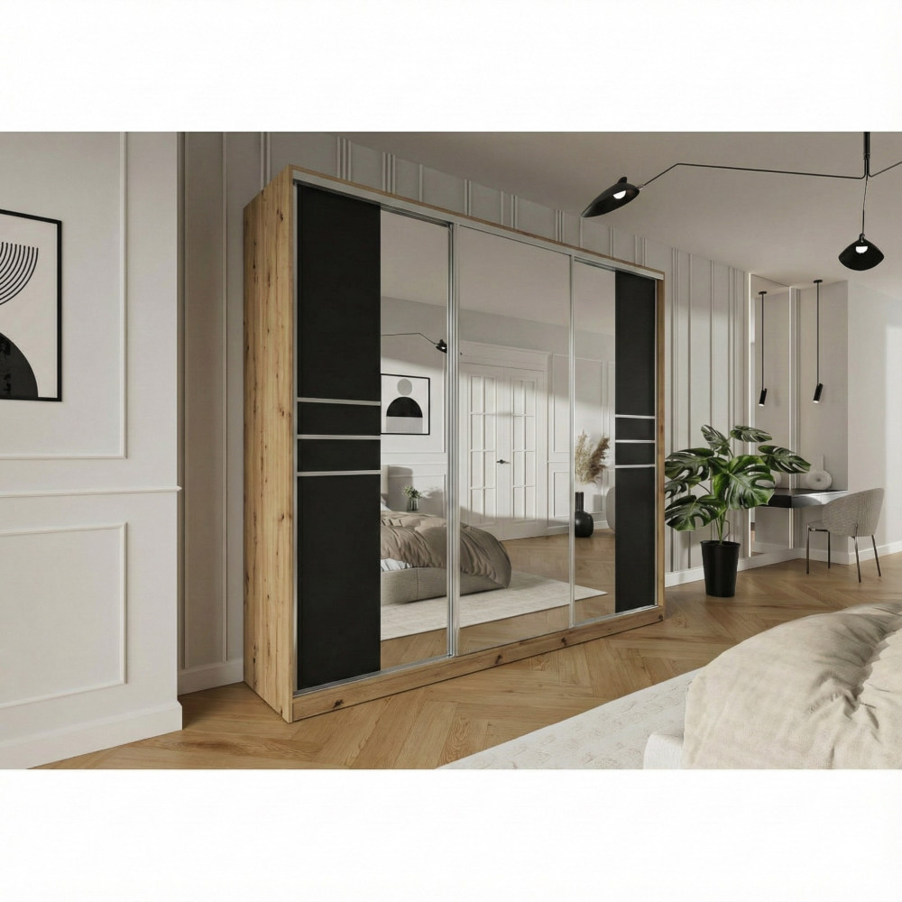 Szafa przesuwna Trend 8 250 Dąb Artisan + Czarny Mat