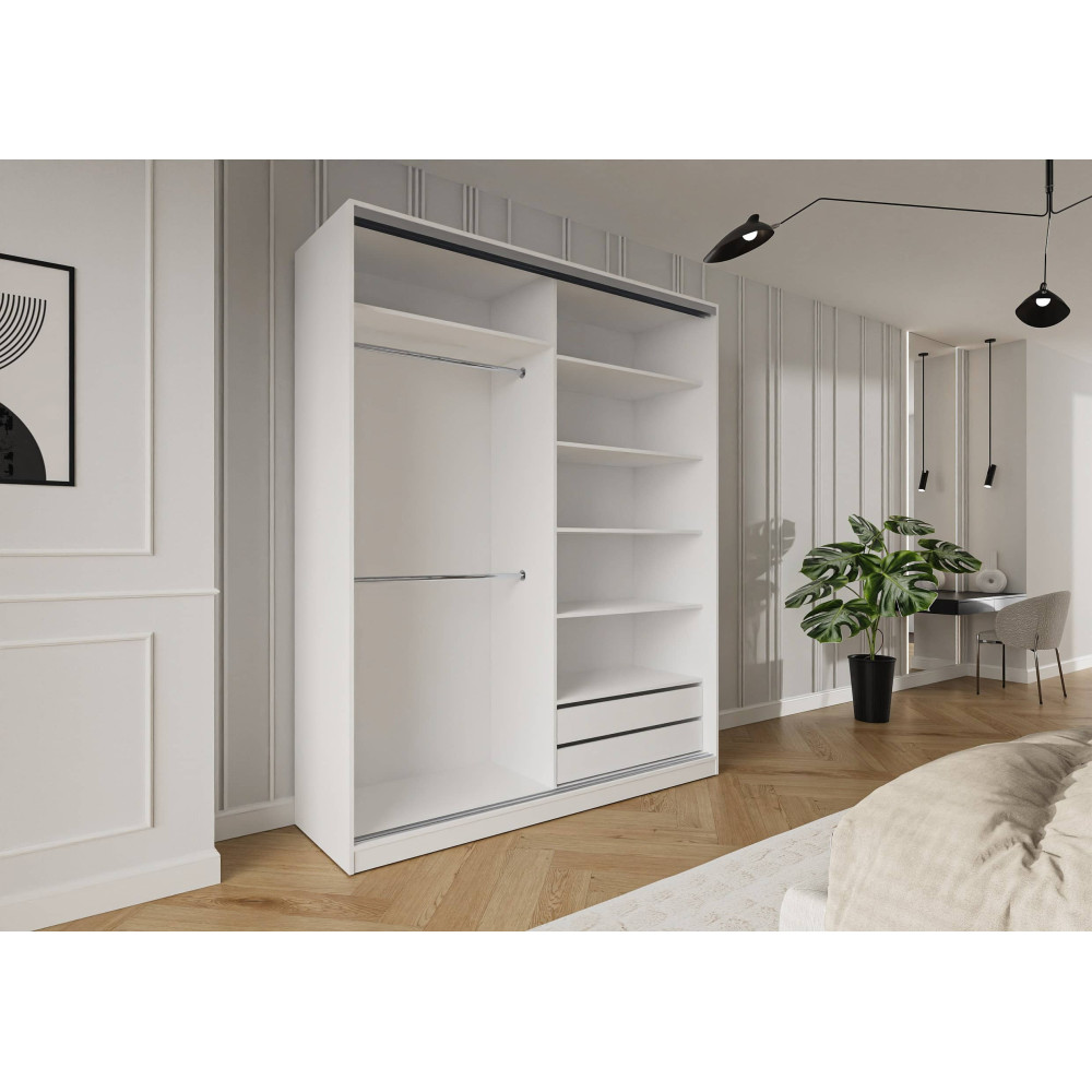 Szafa umożliwia montaż dodatkowych półek w miejscu przeznaczonym na wieszaki – ich rozmieszczenie wybierane jest przez klienta podczas montażu. W przypadku wyboru 2 dodatkowych szuflad, możliwe jest ustalenie ich położenia: mogą zostać zamontowane na samym dole lub nieco wyżej – decyzja zapada podczas montażu.