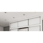 Szafa przesuwna z płyty laminowanej 16 mm. Szafa wyposażona jest w system jezdny zawierający aluminiowe prowadnice typu LAGUNA oraz kółka ułożyskowane